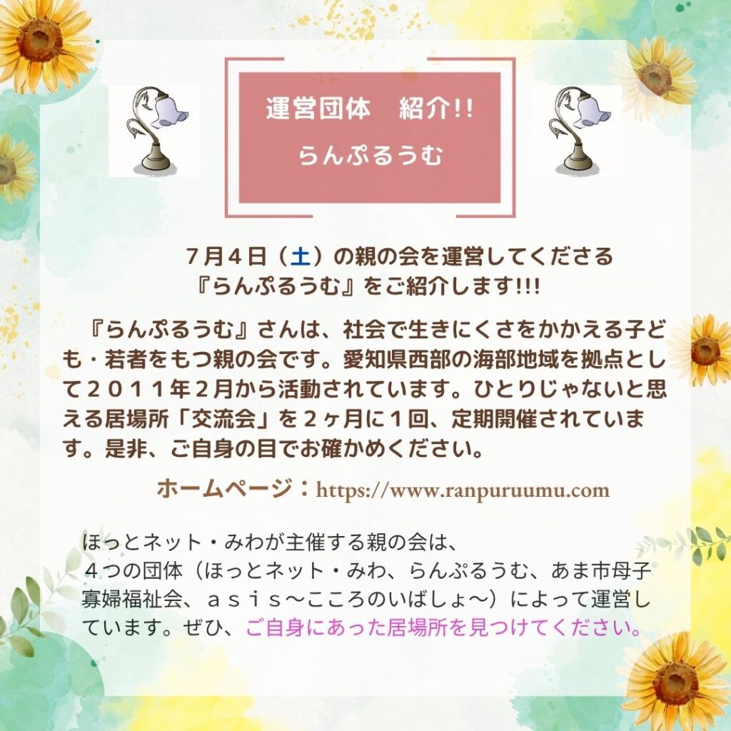 ★運営団体は、らんぷるうむです
