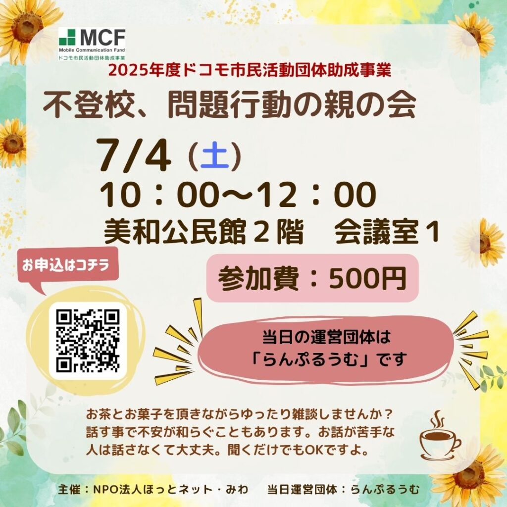『不登校、問題行動の親の会』7月の詳細